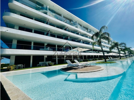 5to nivel: 91 Mts con Balcón con Vista a nuestra cautivadora piscina y al campo de golf de Hard Rock, 1 habitación, 1 Baño, closet, Cocina modular con desayunador (Refrigerador, Estufa, Lavadora y Aires acondicionados y todo el mobiliario incluidos), un parqueo privado.